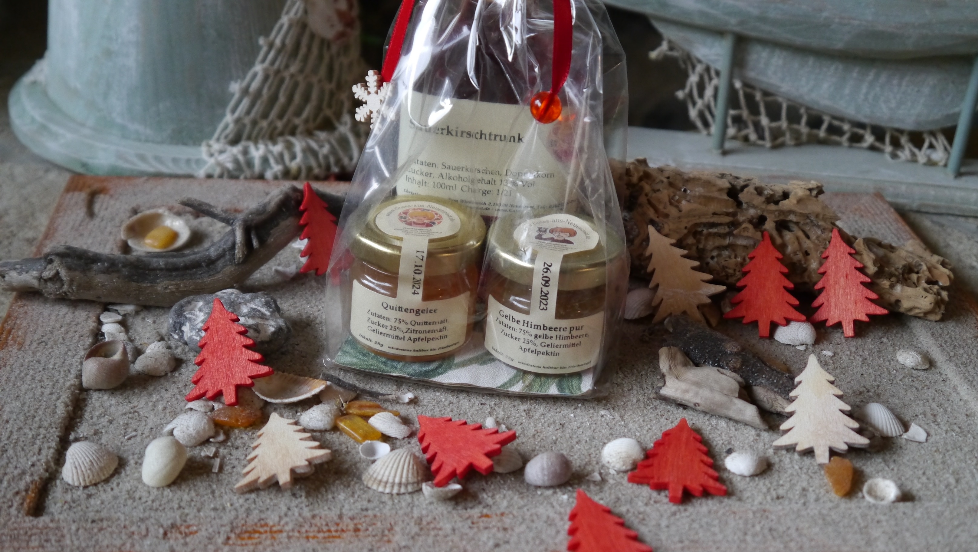 Sie können einen Wunsch äußern und haben ein Auswahl aus Honig, Senf und weihnachtlichen Fruchtaufstrichen.